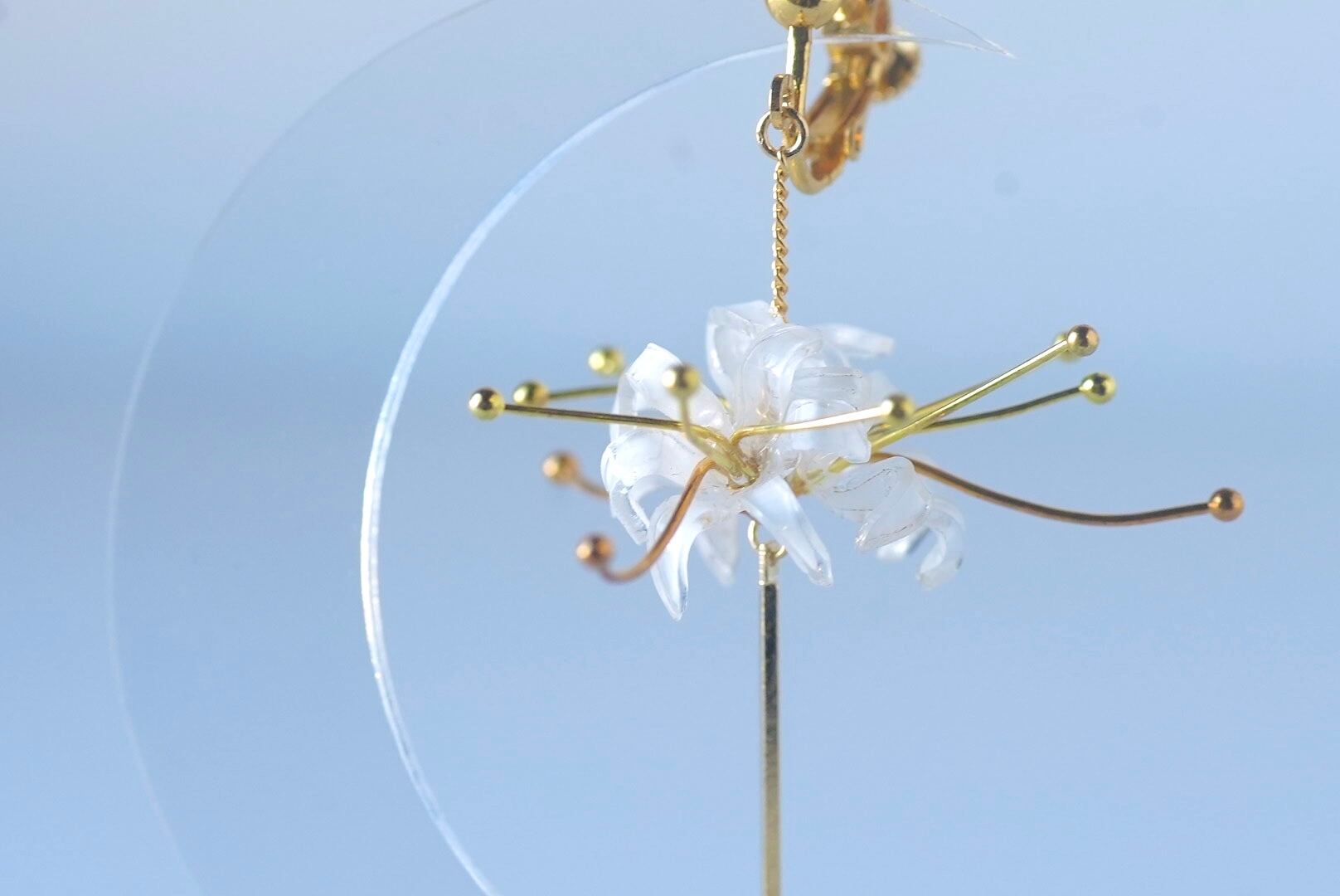 ネリネ 曼珠沙華 両耳 白 ピアスorイヤリング変更可能